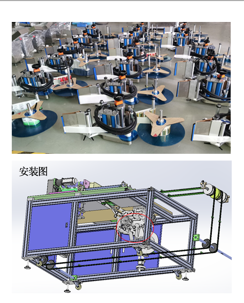 1. 安裝在打片機上,配套打片機使用的貼標頭,在口罩成型前貼上海綿條,速度可與打片機匹配,產能相比成型后貼要高出很多,詳情如圖示: