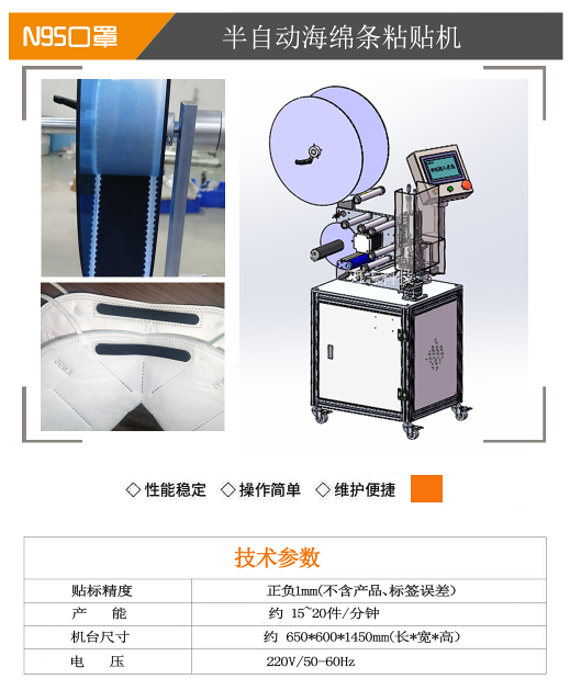 2. N95成型口罩海綿貼附機,應用于成型后立體的口罩打開后貼海綿條
